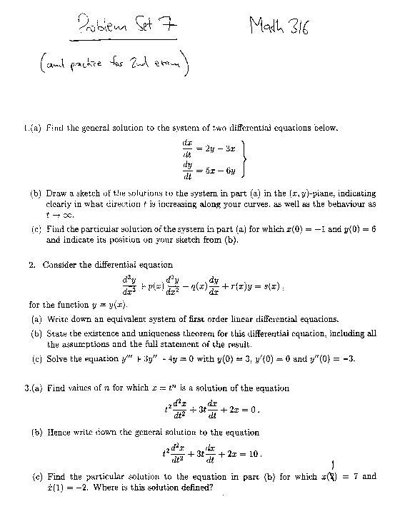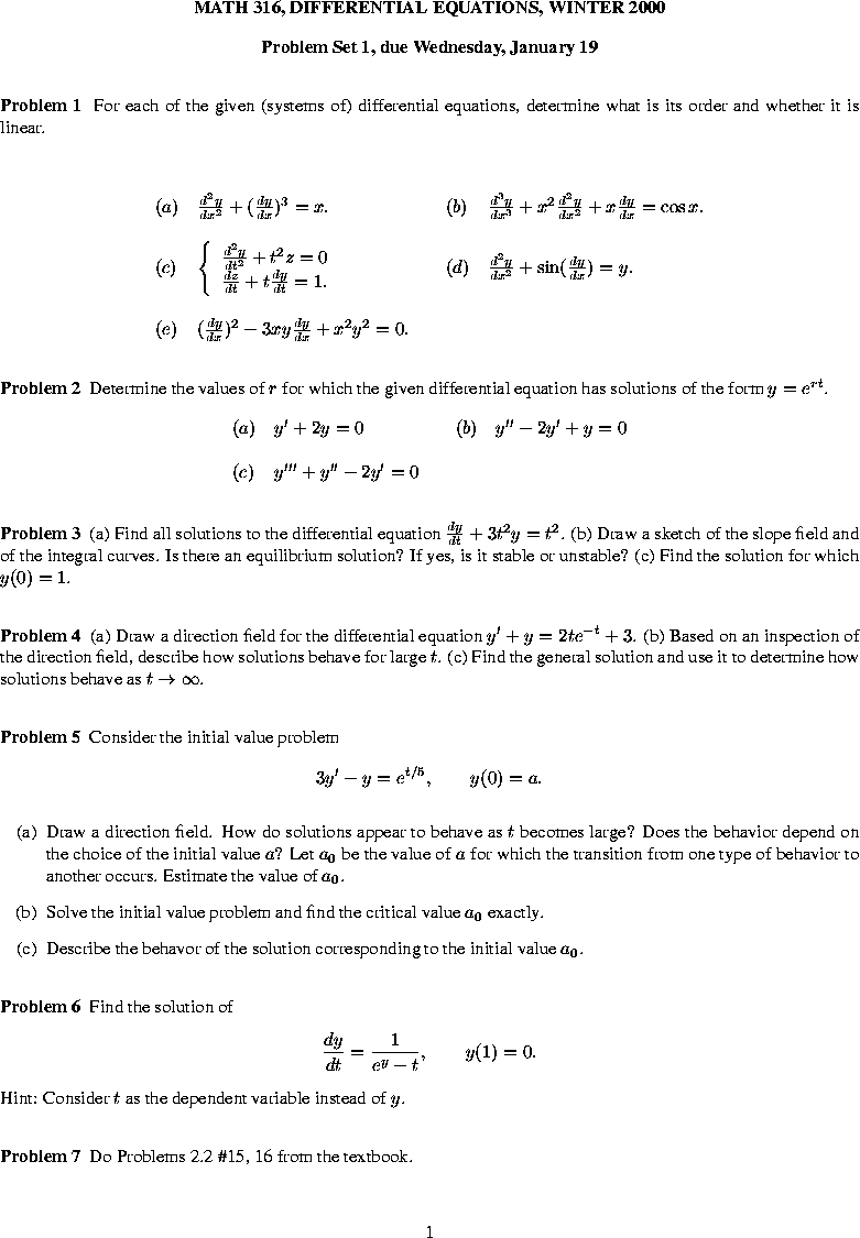 Possible cases for phase plane in 2 dimensions. (Mar 13). HTML. Answers to the Second Exam (corrected). (Mar 22). DVI, PostScript, PDF. Answers to the Final Exam (corrected). (Apr 18). DVI, PostScript, PDF. |
